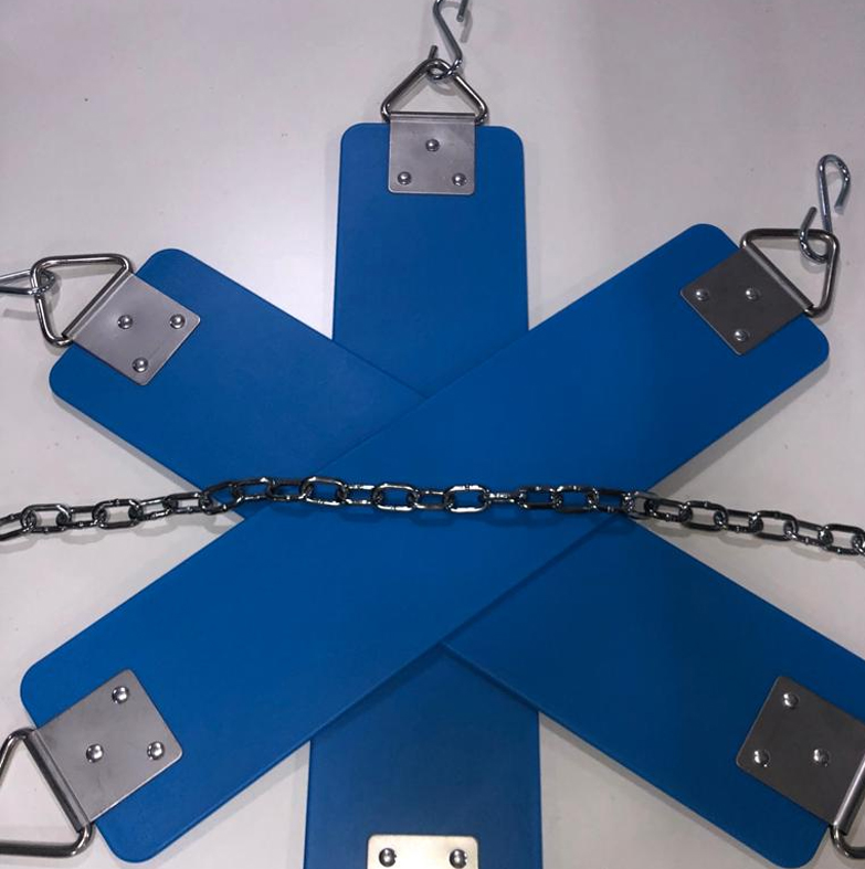 Su capacidad es de 300 kg. La misma incluye sus respectivos ganchos para poder instalarla con cadena y con soga.